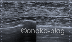 『乳腺が肥厚するとともに比較的均質な低エコー像を呈する』と記載されていますが…うーん…