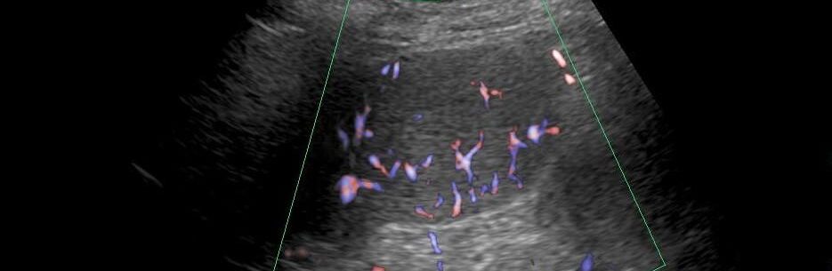 脾過誤腫疑いのエコー画像カラードプラです
